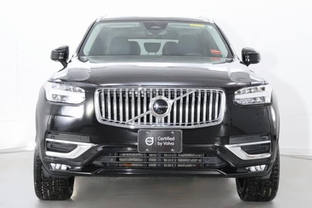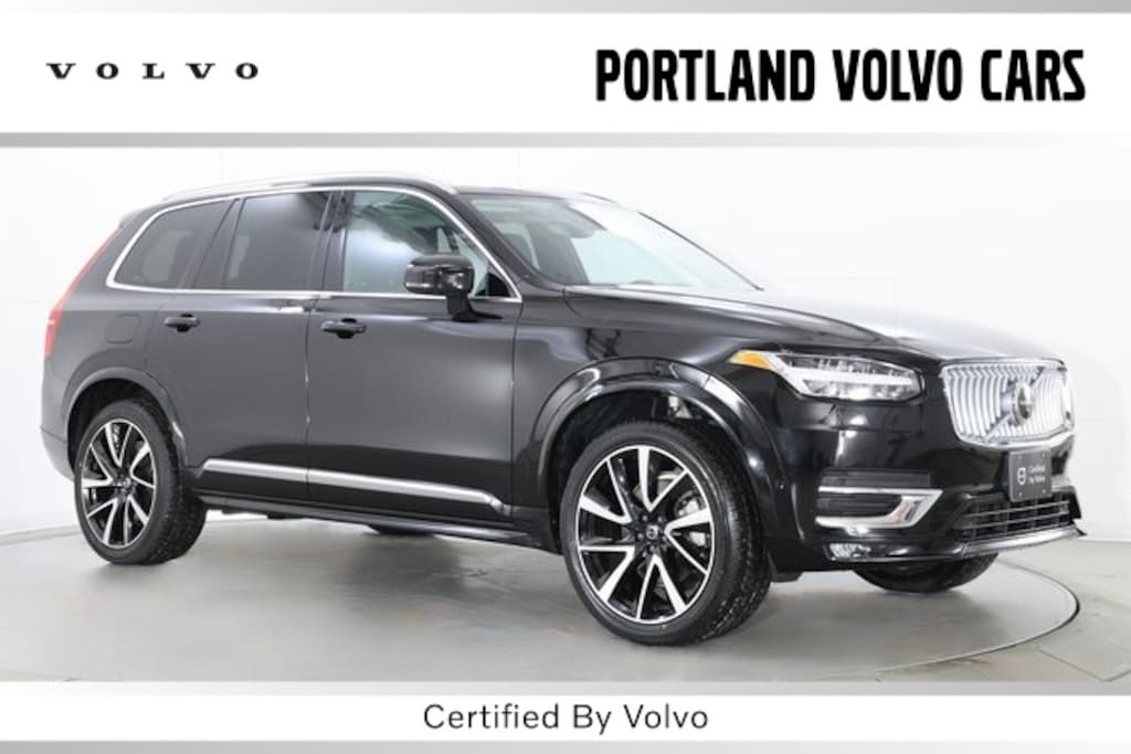 2023 Volvo XC90 B6 AWD Plus in Onyx Black Metallic with Charcoal leather interior available for immediate delivery at Portland Volvo in friendly Scarborough, Maine.